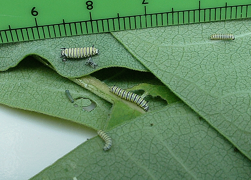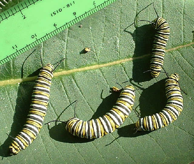 My first Monarch Butterfly caterpillars, each one is about a day older than
