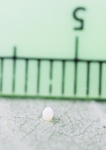 The egg of a Monarch Butterfly, they are laid one at a time with the female