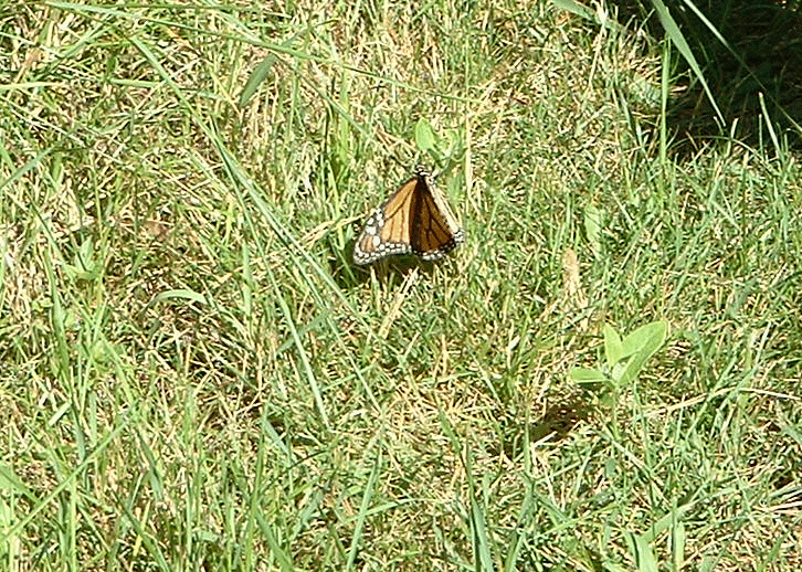 Aug 2-06, a pair of Monarch Butterflies breeding on a Milkweed in my little